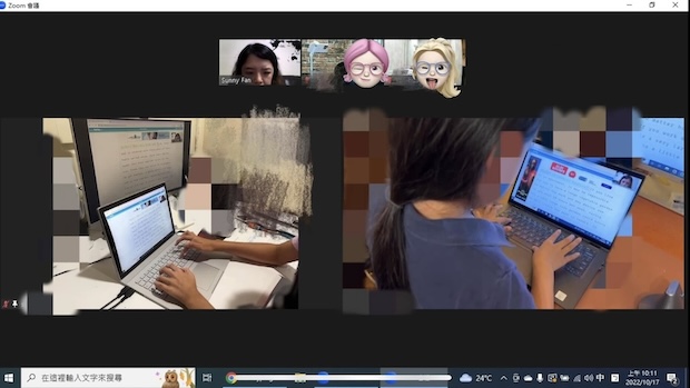接下來,和兩姐妹在網路上每週約會一次,一次50分鐘的教學比現場實地教學辛苦,因為必須分秒全神貫注的盯著電腦螢幕確認她倆每個指法都準確無誤。