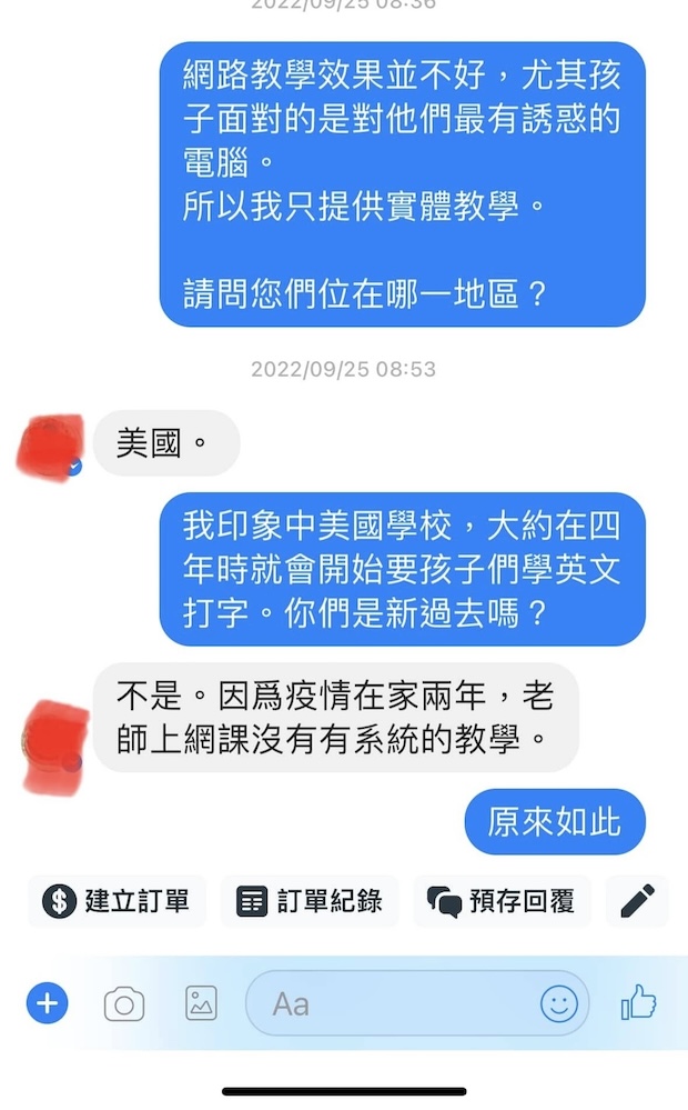 後來家長聊到小孩在美國因為疫情期間上學校網課的打字課程都無法有系統的學習,所以希望我能協助加強。